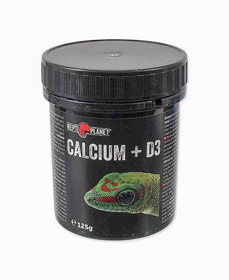 Repti Planet Calcium + D3 táplálék kiegészítő hüllőknek. Finom por állagú étrendkiegészítő kalciummal és D3-vitaminnal. A D3-vitamin segíti a kalcium megfelelő felszívódását, elengedhetetlen a fogságban tartott hüllők számára, ha az állatokat nem érinti természetes napfény. A legtöbb hüllő és kétéltű képes felszívni a kalciumot az élelmiszerekből, ha biztosított a D3-vitamin ellátás. Ezért nagyon fontos megfelelő UVB-sugárzást biztosító fényforrást alkalmazni, mivel az segíti a D3-vitamin szintézisét.