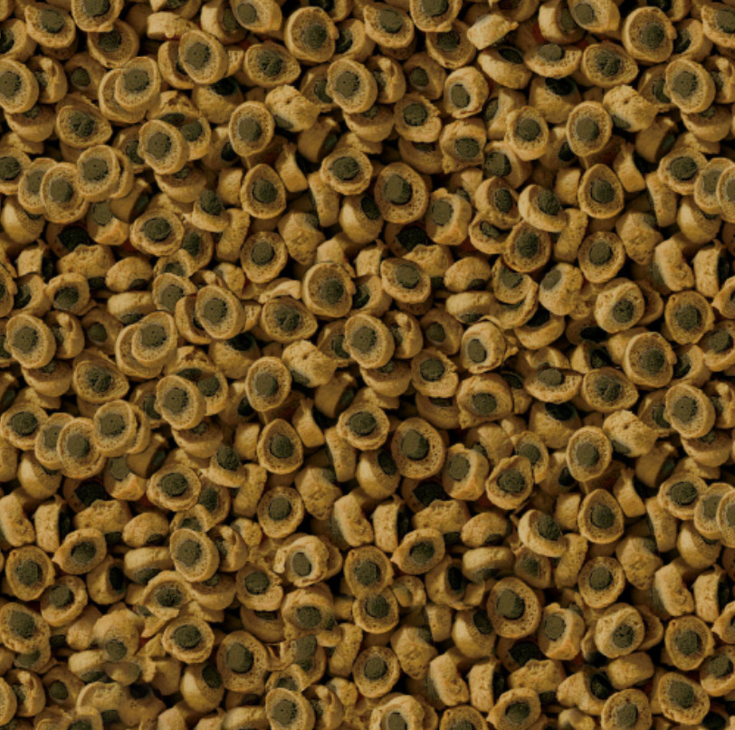Tartalom: búzaliszt, kukoricakeményítő, búzaglutén, spirulina (6%), gyógynövények, sörélesztő, repceolaj, csalán, lucerna, petrezselyem, gammarus, tojáspor, tengeri alga, paprika, spenót, sárgarépa, mannán-oligoszacharidok, zöldkagyló, Haematococcus alga