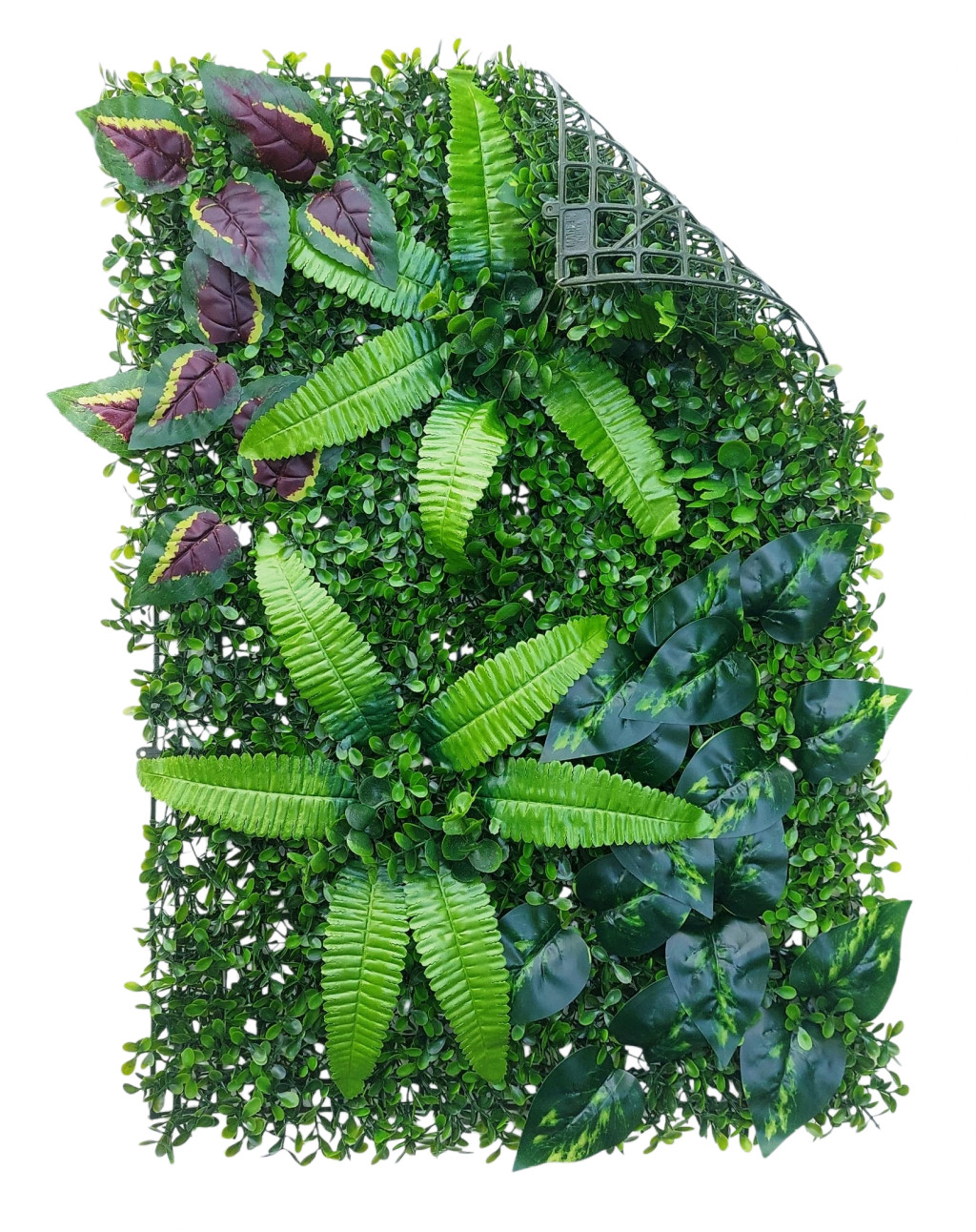 Az erdei vegyes zöldfal panel természetes hatású, sötét zöld megjelenésével bármilyen környezetet feldob. A műanyag növényfal élethűen utánozza a valódi növények textúráját és színét, így tökéletes választás azok számára, akik szeretnék élvezni a zöld növények látványát anélkül, hogy időt és energiát kellene fordítaniuk a gondozásukra.
